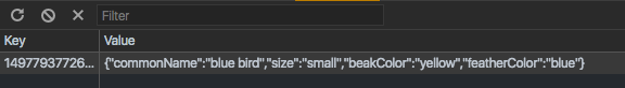 '{"commonName":"blue bird","size":"small","beakColor":"black","featherColor":"blue"}'